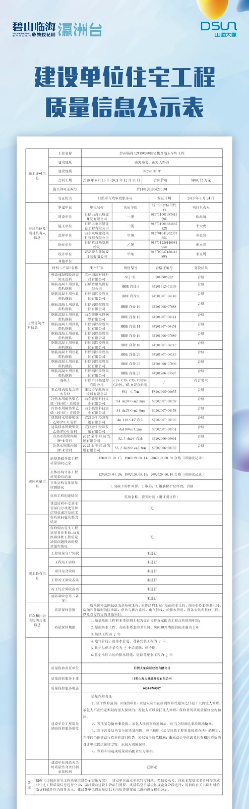 碧山臨海·瀛洲臺(tái)丨建設(shè)單位住宅工程質(zhì)量信息公示表