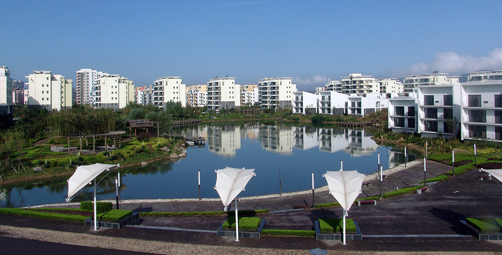 項目于2003年10月開工建設(shè),規(guī)劃共分為六個多層組團、一個小高層組團、一個低層別墅組團以及沿街的公共服務(wù)設(shè)施組團。總占地594畝,容積率0.88,綠化率48%,1萬多平方米的人工水景遍布園區(qū),規(guī)劃建筑面積約38萬平方米,居住總戶數(shù)達3000戶。