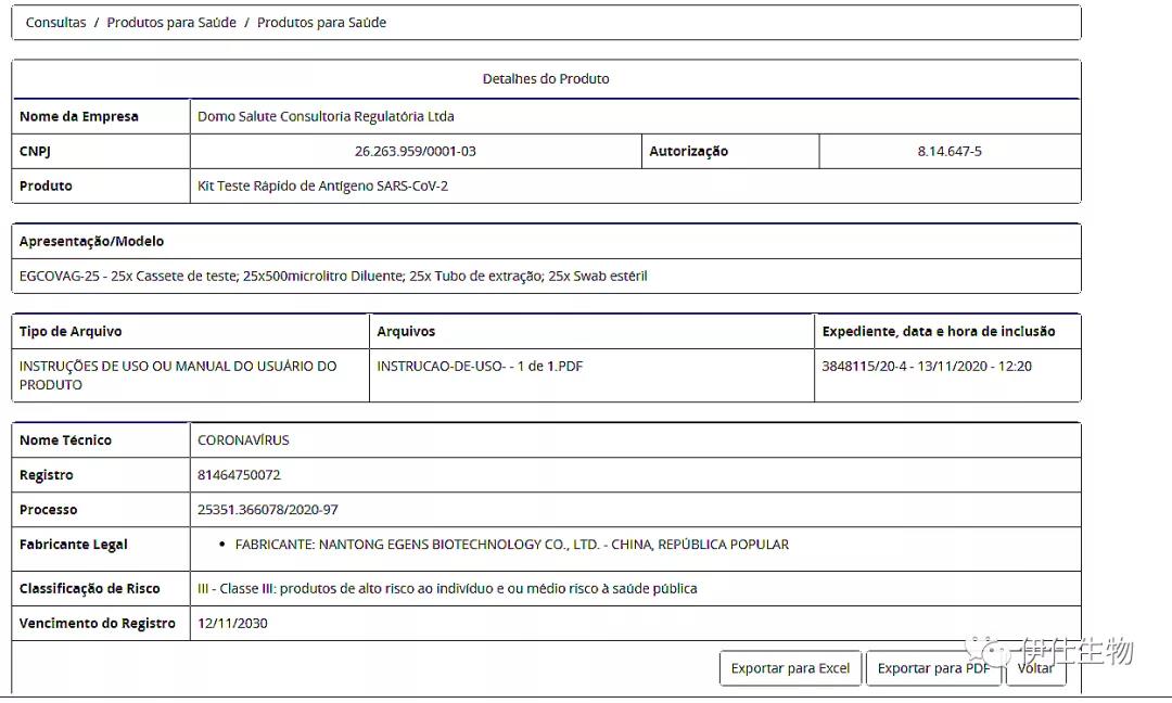 喜訊!伊仕生物新冠病毒抗原檢測試劑獲巴西醫(yī)療器械注冊證