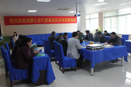 2014年11月26日,西藏自治區(qū)公安廳禁毒總隊(duì)領(lǐng)導(dǎo)在南通市伊士生物技術(shù)有限責(zé)任公司進(jìn)行考察指導(dǎo)工作。此行人員有西藏自治區(qū)公安廳禁毒總隊(duì)索朗戰(zhàn)堆副總隊(duì)長(zhǎng)、拉薩市公安局拉珠副局長(zhǎng)及各地市禁毒支隊(duì)相關(guān)人員共12人。